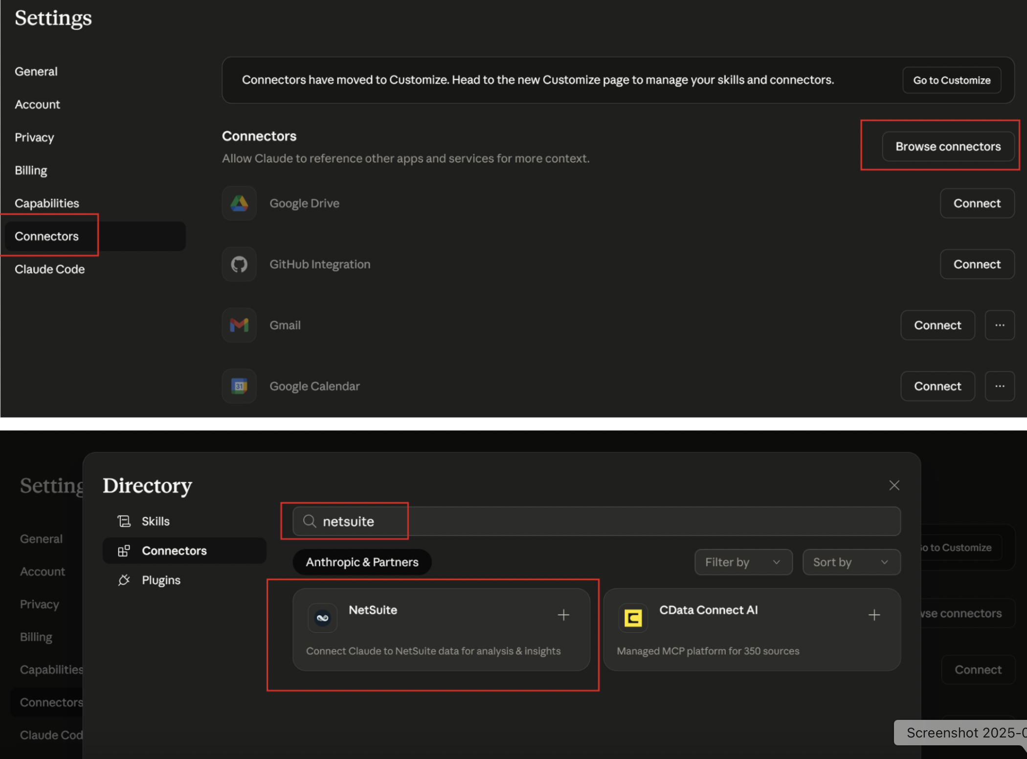 Click Browse Connectors and search for NetSuite